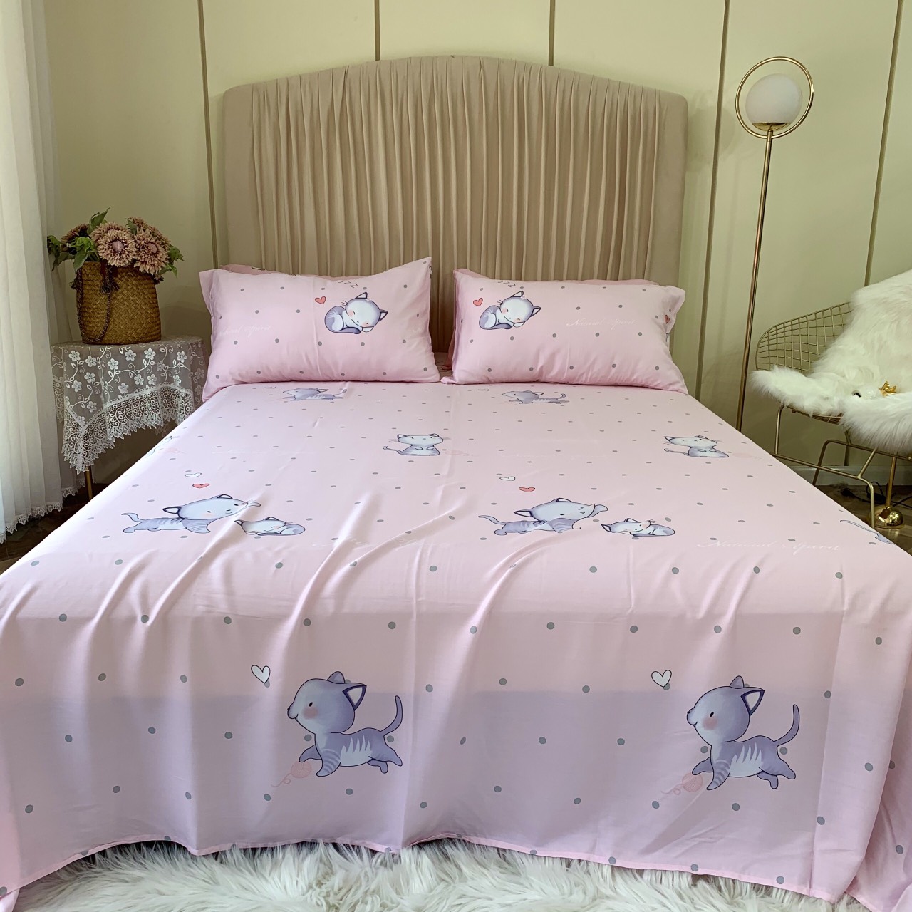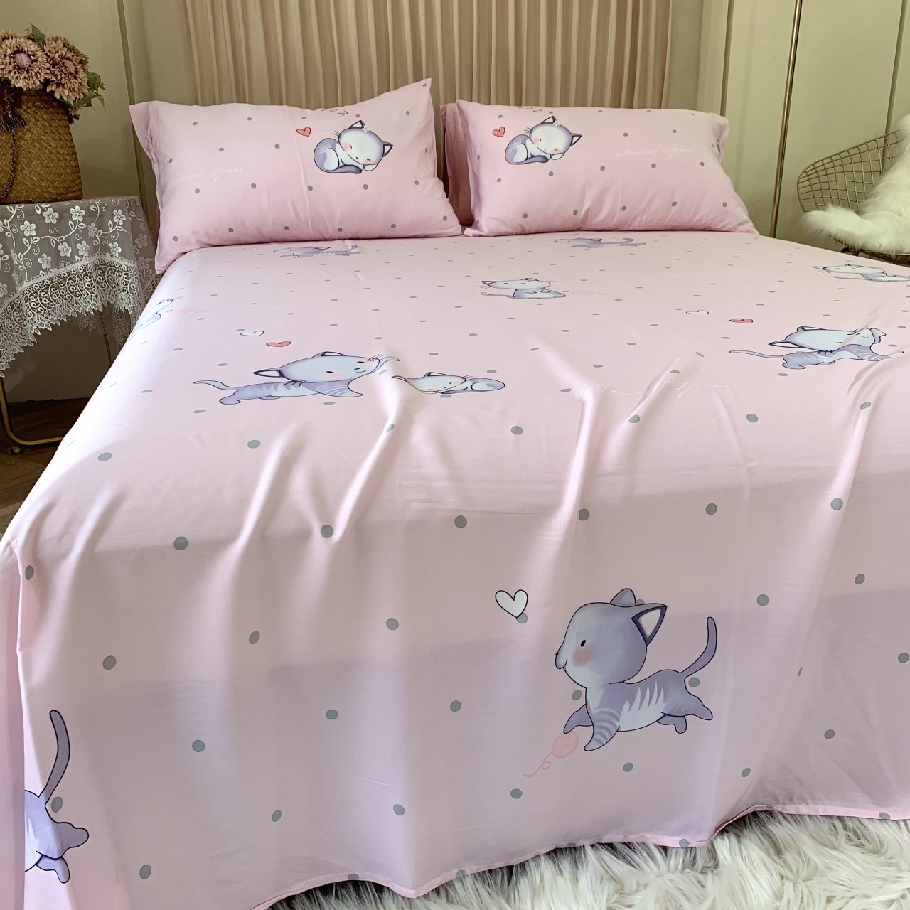 Gồm 1 drap, 2 vỏ gối nằm và 1 vỏ gối ôm
